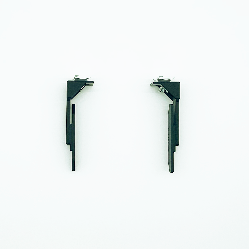 These 3D printed brackets allow mounting TimeMachines’ 2 inch date/timezone clocks (2 rows) to any surface at virtually any desired viewing angle. The brackets are screwed to the side of the clock with the existing clock screws. Two of the T-Track suspended ceiling mount brackets are also included making installation on flat drop ceilings very easy. (3D drop ceilings may require some minor ceiling tile modification). The T-Track brackets snap on securely and have a 1/4″ stud that goes through the mounting arms. An included wing nut is used to secure the mounting bracket to the T-Track mount. The brackets have detents to allow setting angles of display rigidly. The brackets can also be used without the T-Track brackets for mounting the clocks in other locations.