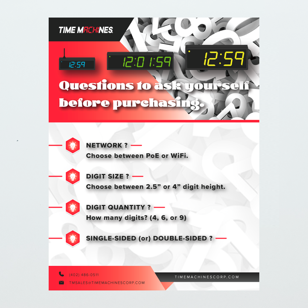 Shop digital network clocks with PoE or Wifi network capabilities. Multiple sizes and options are available. Made in USA.