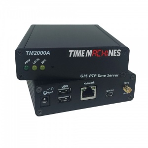 The TimeMachines GPS NTP+PTP Network Time Server represents a major step forward in capabilities at a breakthrough price point. It will supply accurate time for all computers and time keeping devices on the network. Supporting both Precision Time Protocol (PTP) and Network Time Protocol (NTP), a Stratum 1 time source can now be available on the local network with no need for an internet connection. The TM2000A system uses an active GPS antenna to maintain the current time as broadcast by United States GPS satellites planet wide. In addition, a high stability OCXO reference clock is included that allows the unit to serve time if GPS lock is lost for periods of time. The unit is small and can be placed anywhere within the network layout. The built in high sensitivity GPS receiver is able to lock multiple satellites from within many buildings or from a window location, removing the requirement that outdoor antennas be installed in many applications. Outdoor antennas are available from TimeMachines including custom length cables and accessories.